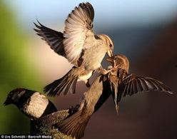 当然,除了吃瓜大战,麻雀打架也是一大看点。有一次,我在公园里看到两只麻雀为了争夺一个树枝上的位置而大打出手。它们互相啄对方的羽毛,发出“叽叽喳喳”的叫声,场面十分混乱。周围的游客都被这突如其来的“战争”吸引了过来,纷纷拿出手机拍照留念。不过,没过多久,两只麻雀就停下了战斗,仿佛刚才的一切都没有发生过,又恢复了和平共处。
